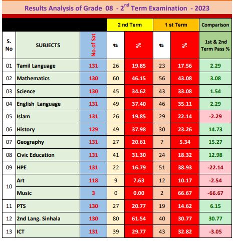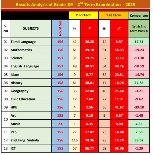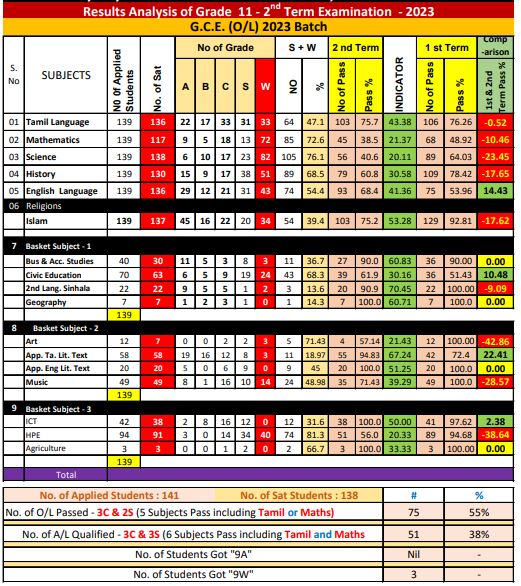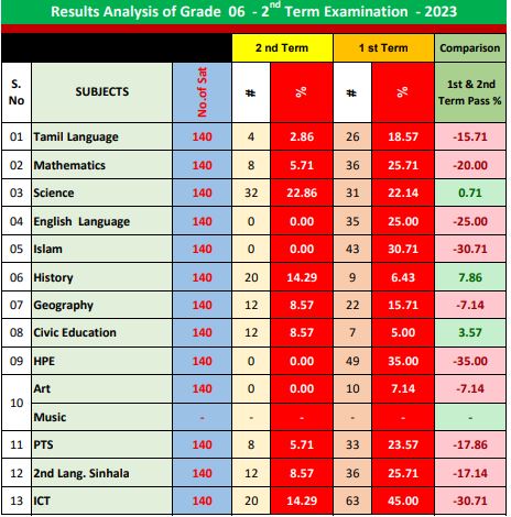 Results Analysis of 2nd Term Exam 2023 (Grade 6 to 11)