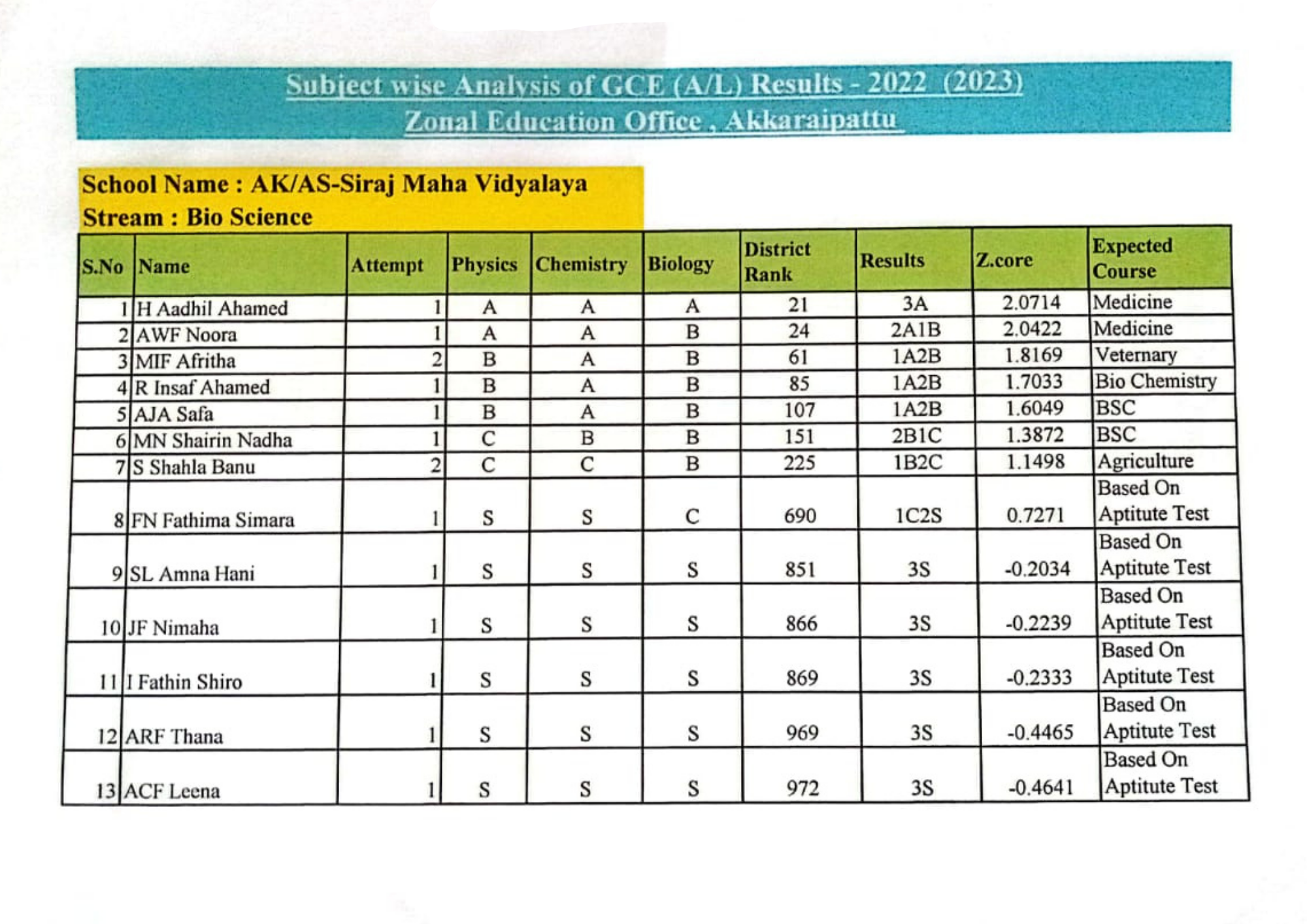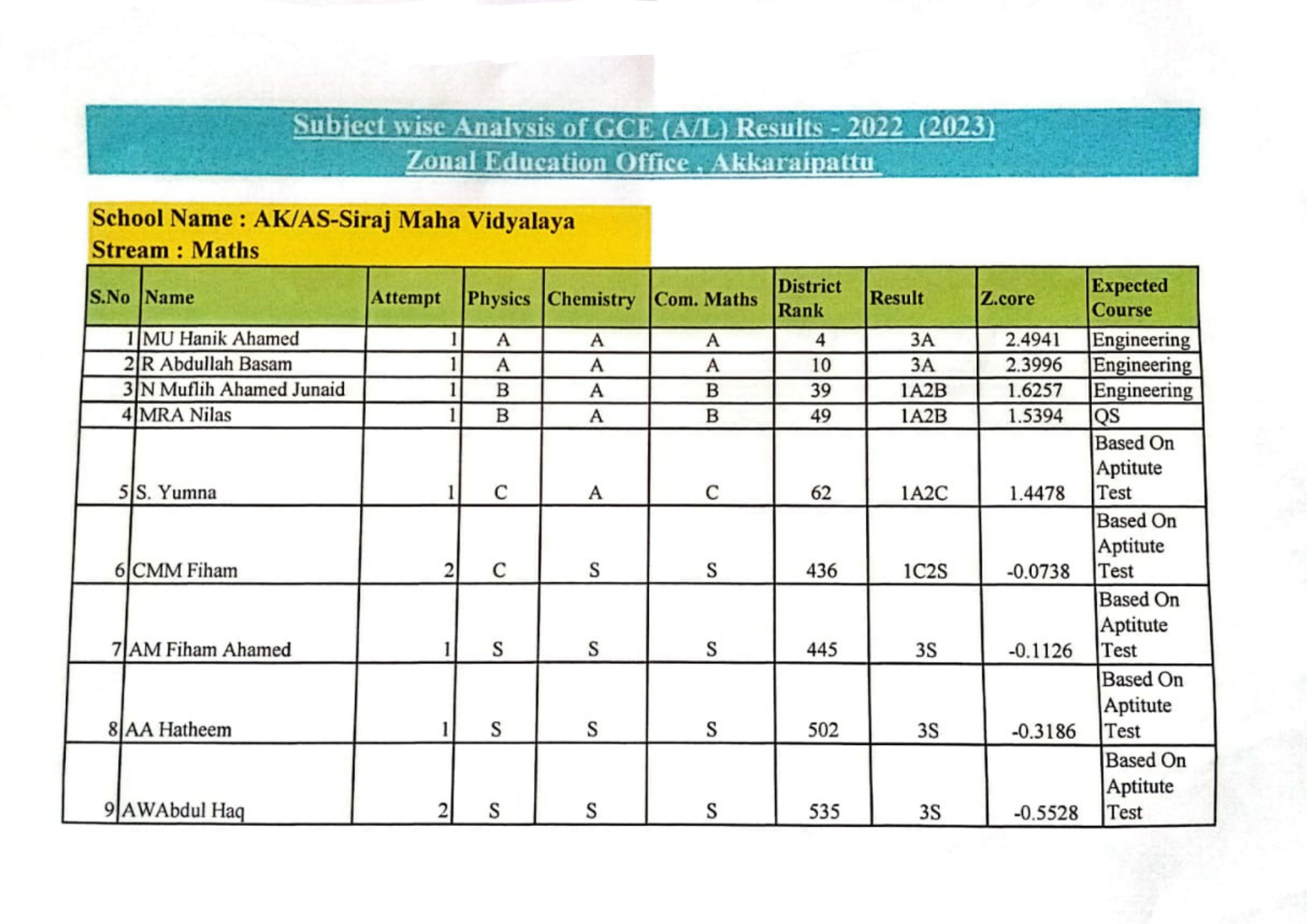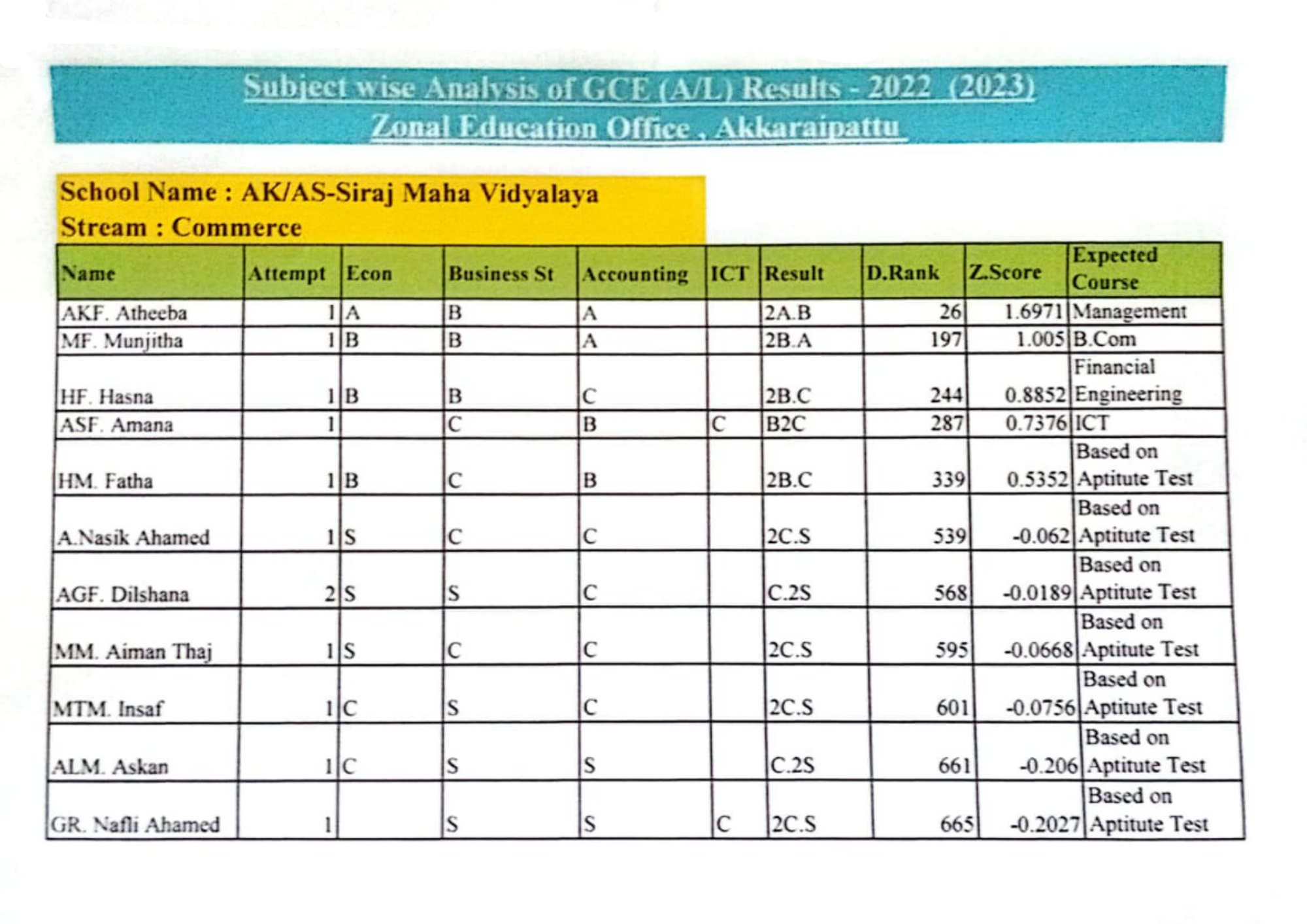 G.C.E.(A/L) Exam Performance